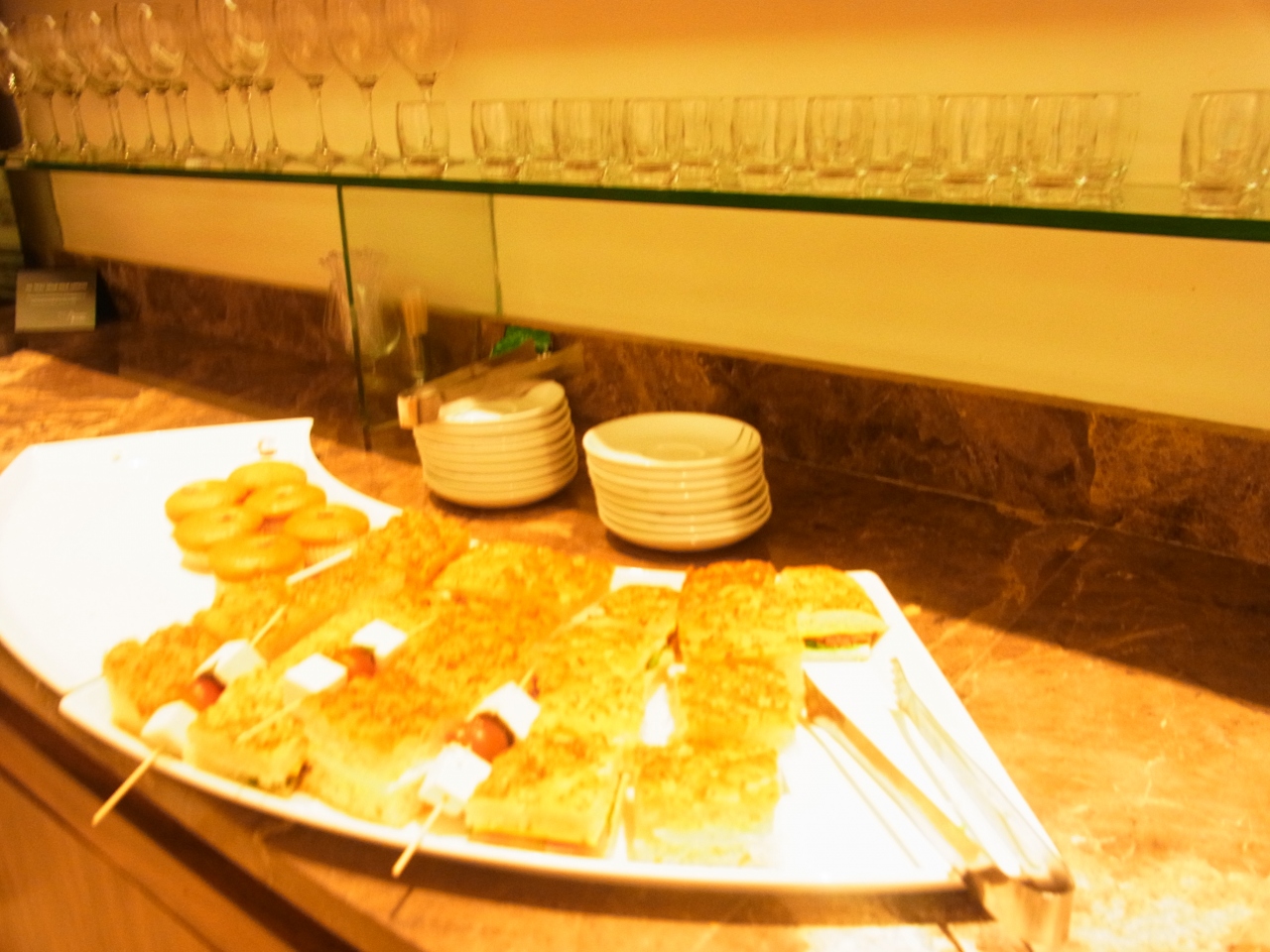 アエロメヒコ航空のメキシコ国際空港でのラウンジです。意外と室内は空いていて、私たち成田へ向かう飛行機に乗る人がもうひと組だけでした。ラウンジの室内はゆったりとしたソファで落ち着いて飲み物も戴けました。ワイン、テキーラ、ビール、とお酒はだいたいなんでも揃っています。そしてお掃除の女性が、いつも綺麗にお料理の出ているテーブルを拭いてくれました。