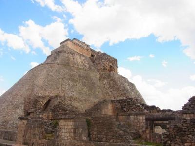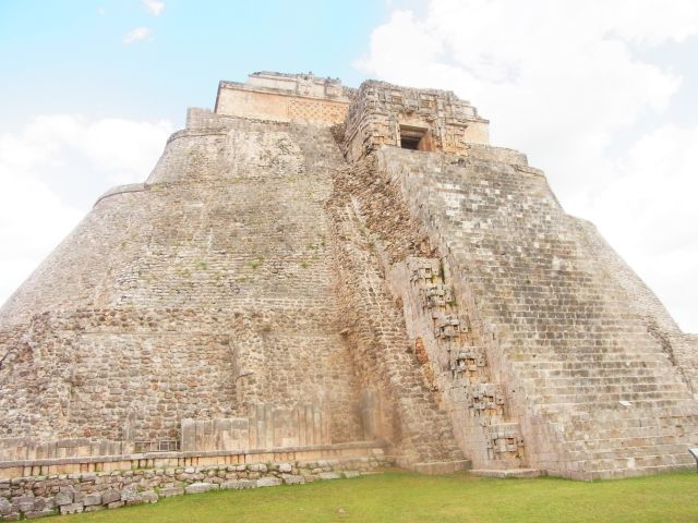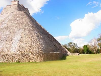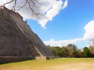 7世紀初めに栄えたこの遺跡はプウク様式と呼ばれるマヤ文明のオリジナル色濃い建造物です。プウク様式の特色は建造物の壁一面に彫刻を施した石を組み合わせて複雑な幾何学模様や蛇などを華麗にそして過剰に装飾をしていることです。高さ38メートルの巨大なピラミッドは側壁が丸みを帯びて優雅さを醸し出しています。私は3月10日15時13分にククルカン降臨と同じような現象をこの魔法使いのピラミッドで見ました。