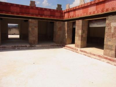 月のピラミッドから入る入口の直ぐにあります。このティオテワカン遺跡でもっとも完全に近い状態に修復をされた建造物です。月のピラミッドで祭儀に携わる神官の住居らしいです。石柱にはケッアルパパロトルの鳥をモチーフにした浮彫が鮮明に残っています。建てられた当初は美しい極彩色の都市だったのでしょうね。