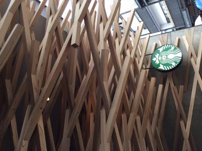 スターバックスコーヒーは関西でもおなじみですが、九州福岡へ行ったら是非スターバックスコーヒーの大宰府天満宮の表参道店がいいよと、友人に勧められて、スターバックスコーヒーのために、はるばるとやって来ました。当日は天気は大雨です。そんなこんなでこのスターバックスで、のんびり まったりしました。お店の雰囲気は、梅の天満宮と言ったところでしょうか。白木の天井の木の組み合わせが和を感じさせてくれます。もちろんコーヒーのお味はいつものスタバでした。