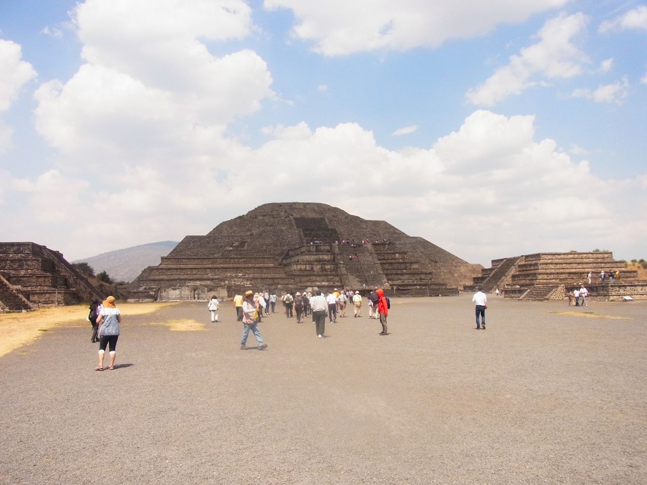 憧れのティオテワカンへやって来ました。太陽のピラミッドは高さ65メートルでティオテワカンの中では最大の建築物で、世界3番目の大きさだそうです。