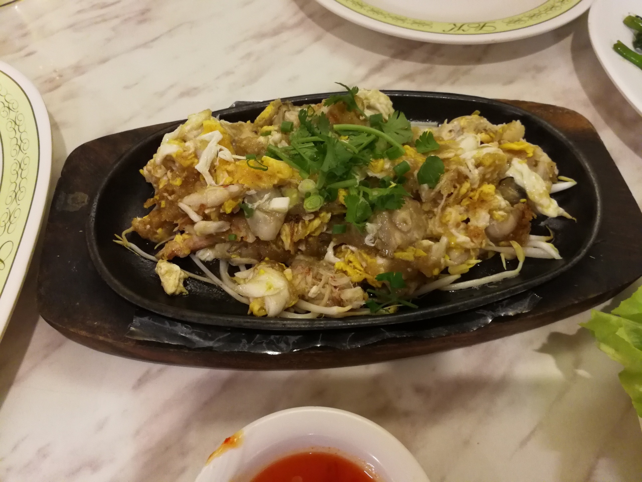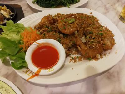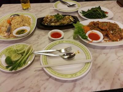 ホイトートかオースワン (どちらも牡蠣料理) が目的だったのですが、ここではオムレツ風のオースワンにありつきました。他に海老とニンニクの炒め物、空心菜、そして蟹入りのチャーハンなどをオーダーしました。店内はかなりの混みようで、少し時間がかかりましたが、待たされると言うほどでもありませんでした。