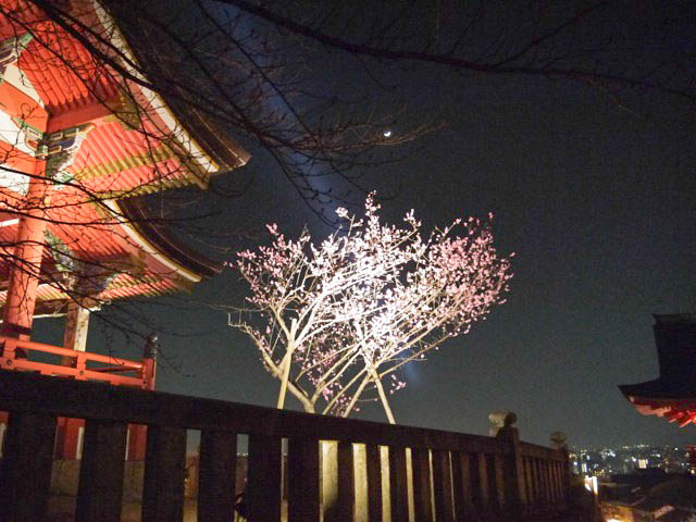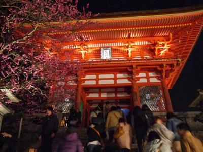 夜の拝観で清水へ参りました桜はまだでしたが、梅が満開ですばらしい絶景とライトアップに感動平成25年3月8日(金)~ 17日(日)平成25年3月22日(金)~ 4月7日(日)午後6時30分~9時30分(受付終了)拝観料/大人400円 小・中学生200円以上のような日時で開催中桜の頃は、ことさら美しいのでしょう