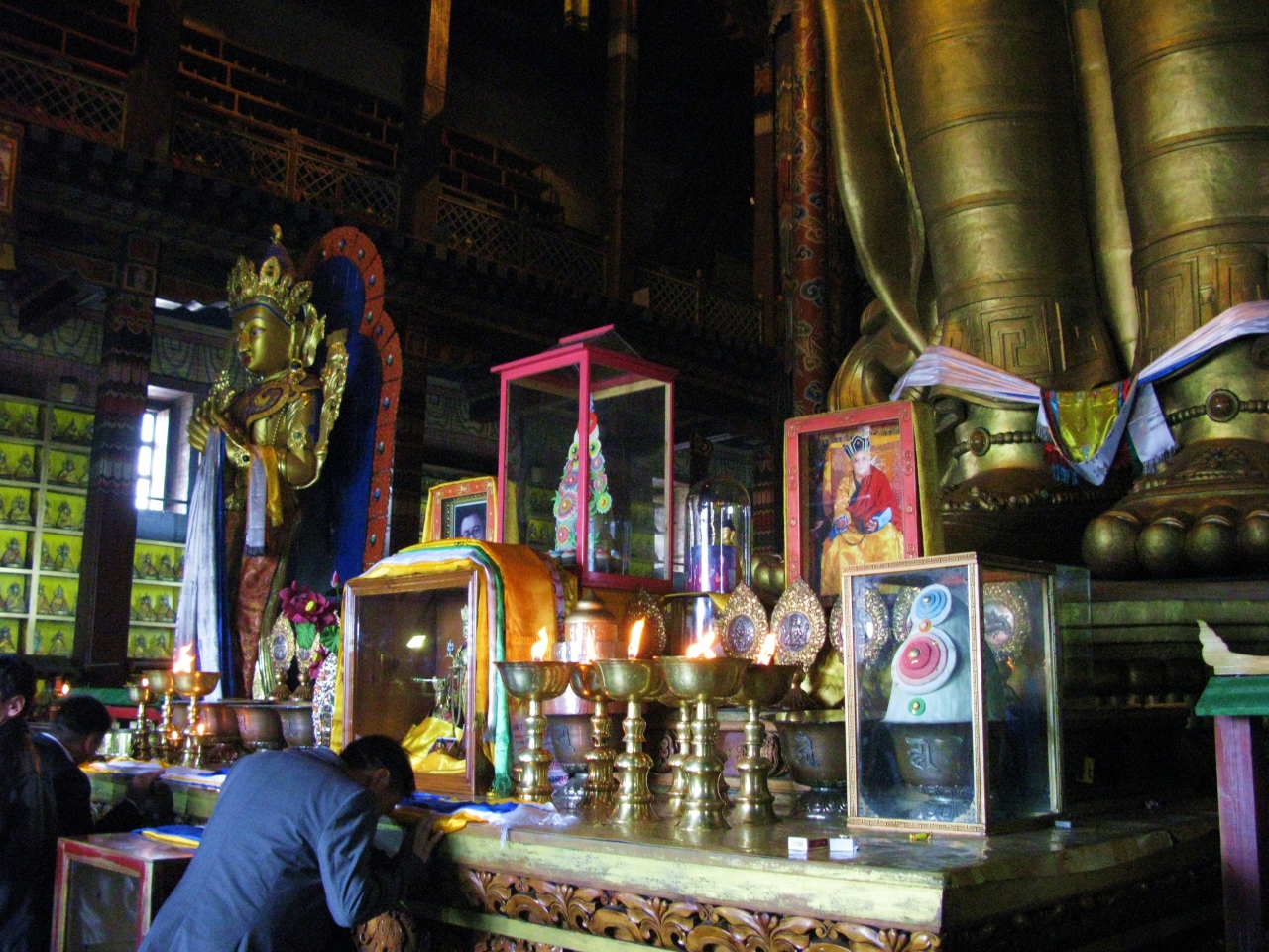 狭いパゴダの中に入って右から金箔を渡され、それを仏像に貼ったら、今度は左から“あなたのお母さんのため”と別のおばさんから捧げものの花を渡されます。