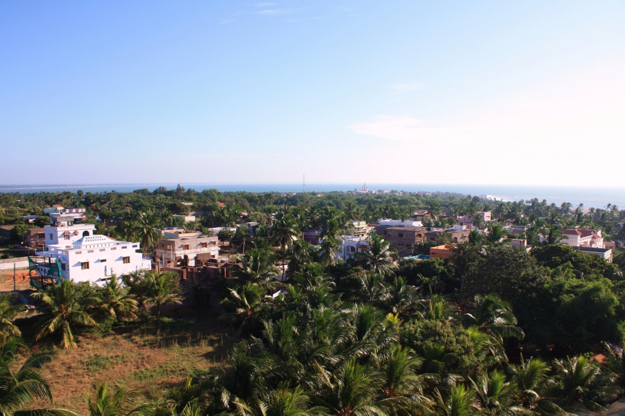 屋上からの景色も良く、カーニャクマリの街並みだけでなく、インド洋に浮かぶヴィーヴェカナンダ岩やティルヴァッルヴァル像も眺めることができます。