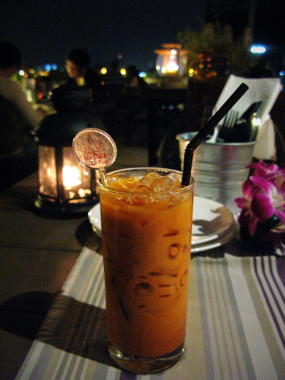 ここの売りは、何と言っても、オープンテラスの席から眺められる対岸のワット・アルンの風景。