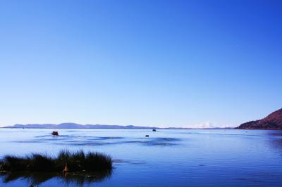 - 空と湖の一面の青の世界に映えるトトラの島々はまさに異次元の絶景!