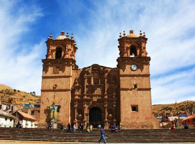 プーノの中心、アルマス広場に建つ素朴な印象のカテドラル。