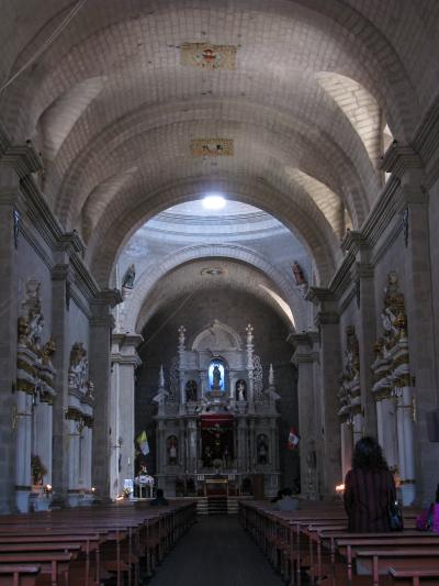 クスコやアレキパのカテドラルと違って、黄金の祭壇や鮮やかな内装といった豪華な演出はないですが、白い石造りの内部が清楚な雰囲気を醸し出していて、プーノの人々の清らかな信仰心が伝わってきます。