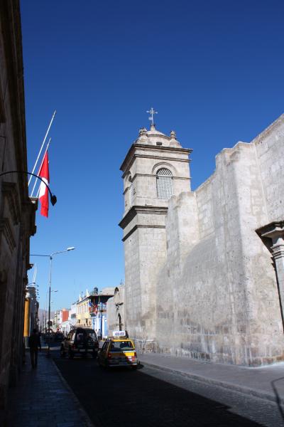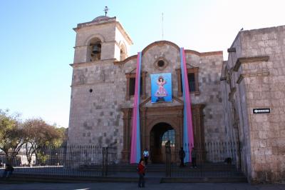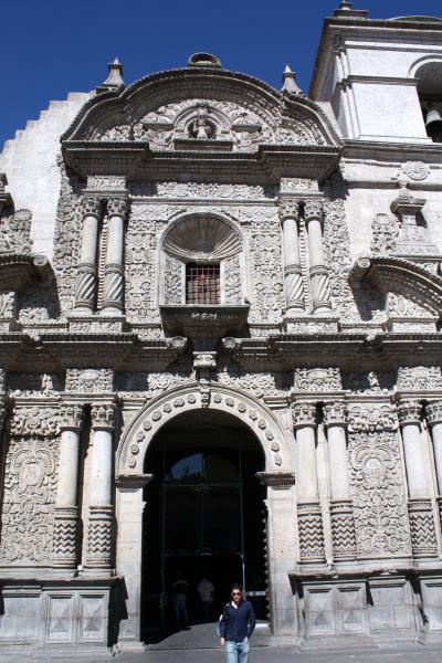 アレキパの中心、アルマス広場のカテドラルと反対側の角に建つイエズス会の教会。