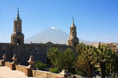 昼はカテドラルの背後にミスティ山をはじめとするアレキパ三名山の姿が、夜は明るくライトアップされたカテドラルが浮かび上がり、白い街の美しい姿が楽しめます。- 旅行時期