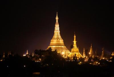夜はライトアップされて黄金に輝くシュエダゴォン・パヤーの姿が美しいですが、普通にカメラを手に持って撮影するとぶれやすいので三脚をもっていくとよいかも。