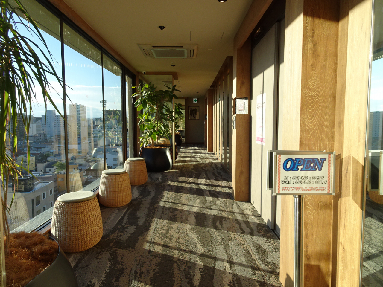 高崎駅から少し離れていますがゆっくりできるホテルです。9階にある大浴場には、広めの低温、高温サウナ 浴室内の階段を上がると景色の良いジャグジーがあります。9階ラウンジには、アイスバー。5時から1階のラウンジでは、ビールサーバーを含む各種アルコール、ソフトドリンク、ソフトクリームマシーンで全てフリー。1階レストランも結構広いので落ち着いて取ることができました。プチケーキもいろいろおいしかったです。