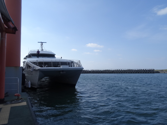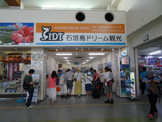 離島ターミナルの前にも駐車場がありますが、周りには結構大きな駐車場があるのでレンタカーで来られる人にも使いやすいフェリーターミナル。船着き場には具志堅像が構えています。ほぼ観光客が中心でツアーバスが到着するたびに混みます。