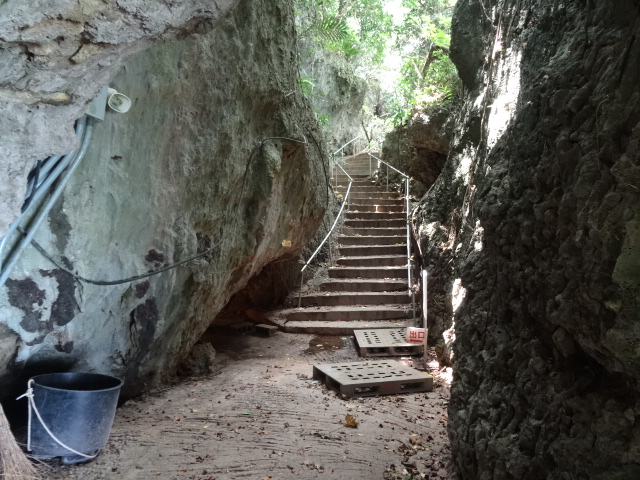 入り口は、山の中で鍾乳洞を抜けるときれいな海が広がります。駐車場はそれ程広くはありませんがきれいに整備されています。平日の午前中だったので2組くらいしかいませんでした。大人一人1250円で鍾乳洞へ海へ続く鍾乳洞はあまりないかも。