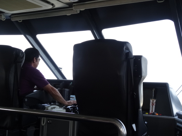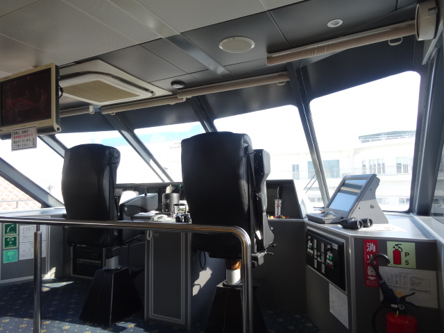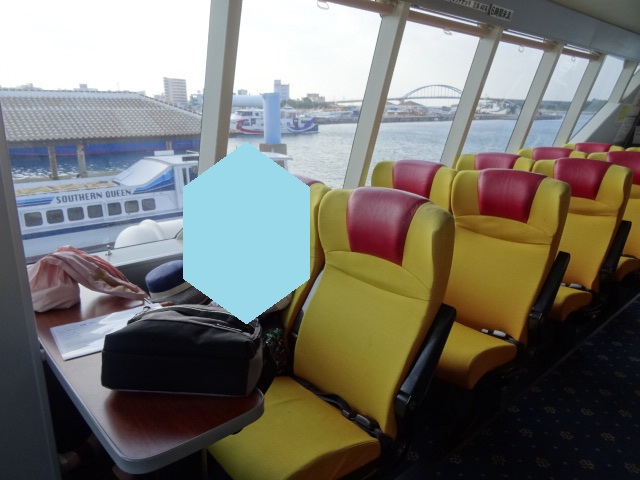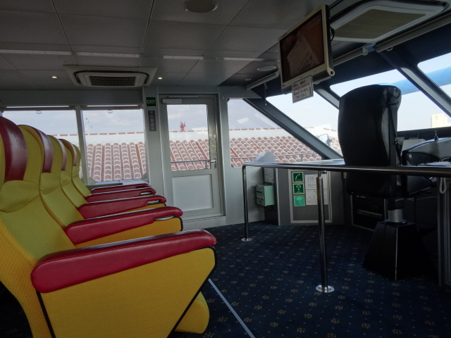 石垣島離島3島ツアーに参加しました。石垣港から西表島まで45分位。乗った船はプレミアムドリーム号。行きも帰りも2階席は景色が良いので乗船してそのまま500円渡して2階席へ向かいます。操縦席が前方に2席船室は、明るくて気分が良いです