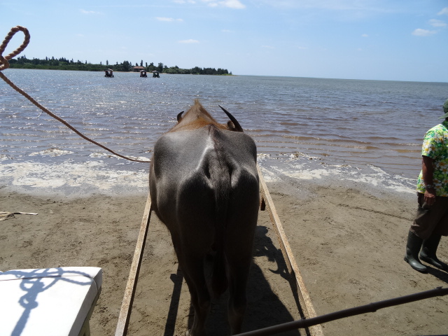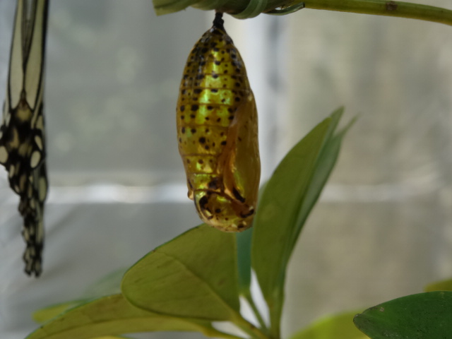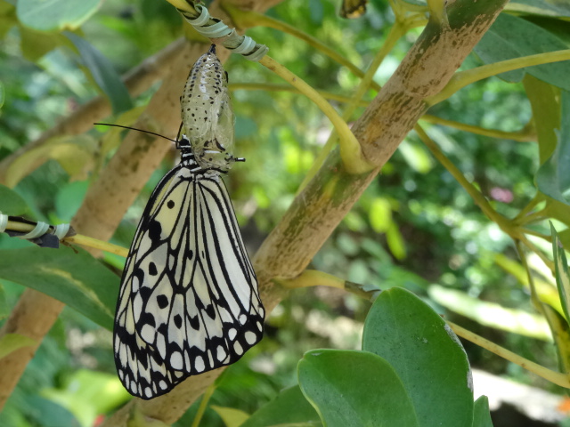 由布島へは、水牛車でゆっくりと渡りました。島内は、水牛の池、蝶々園、ブーゲンビリアガーデン、マングローブ遊歩道などがあります。蝶々園ではオオゴママダラのさなぎが黄金色。訪問した時 ちょうどふ化したところでした。