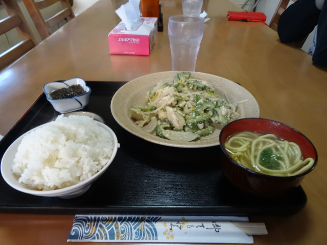 ホテルからウォーキングをしていたらたまたま見つけた食堂です。地元の方の集まりとかで結構流行っていました。お値段もごーややんぷる定食が600円ととても庶民的なお店です。ハンバーグ定食800円など気軽に入れます。