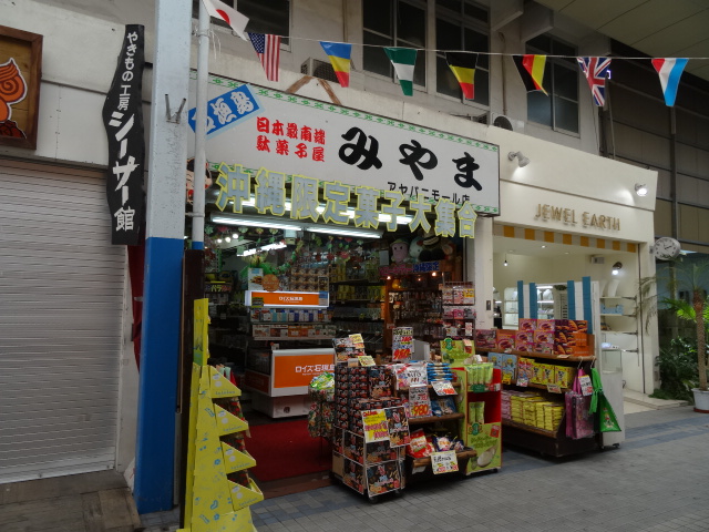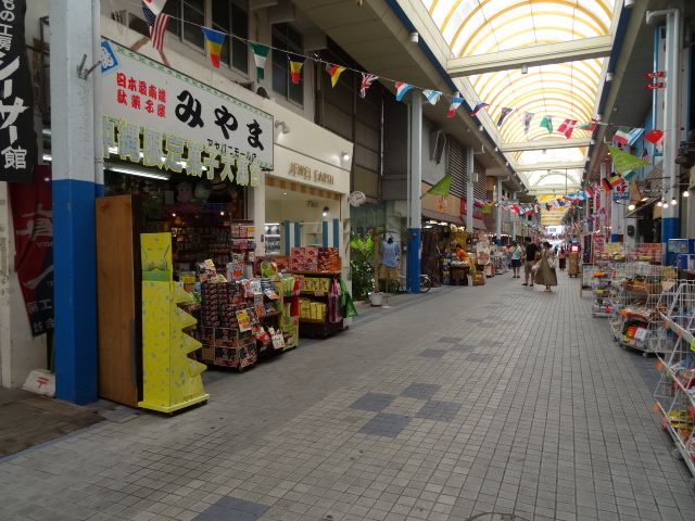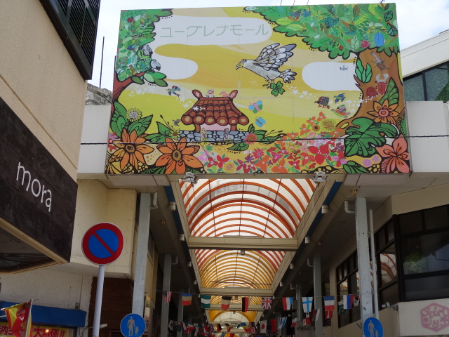 レンタカーで石垣港の近くの駐車場に止め 歩いて5分位でユーグレナモールニ¥に到着。日曜日でしたが昼間は、結構空いていましたモールというより商店街的な感じです。お土産屋さんは結構広いお店が多く石垣島ならではのお土産がたくさんありました。