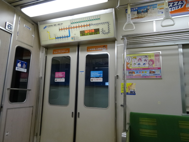 福岡空港から博多駅までの区間をよく使いますが、どちら方面の電車もそれ程混む区間ではないようでほぼ座って移動できます。社外表示、社内表示もわかりやすく安心して使用できます。社内の利用上のご協力案内チラシが多いのには少々驚きますが安心安全マナー重視は良いことだと思います。