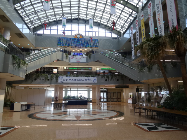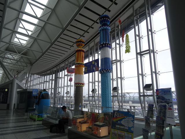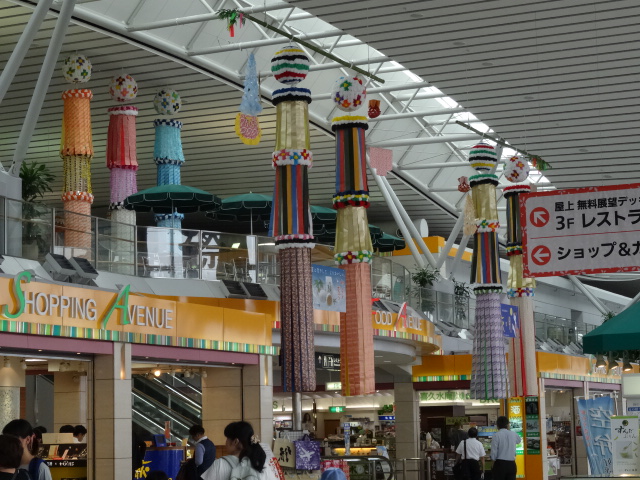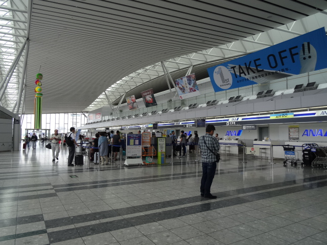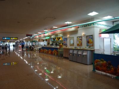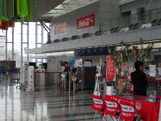 キャンプなどイベントがある時期はとても賑やかな空港ですがそれ以外は、結構広々した感じが味わえます。1階到着口近くには、フルーツのお店が並んでいるのでとてもいい香りが漂っています。到着ロビーもイベント挨拶ができるスペースが作られており他の地方空港とは違い立派です。