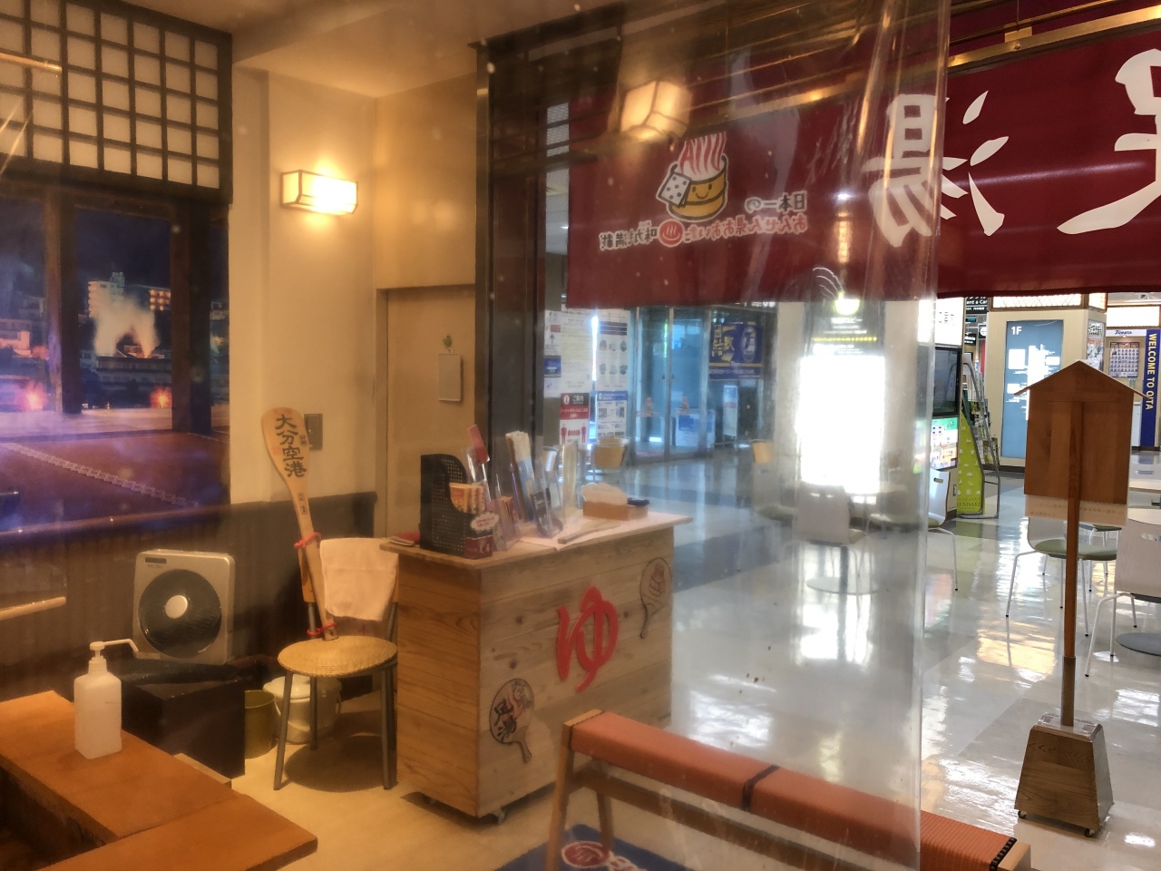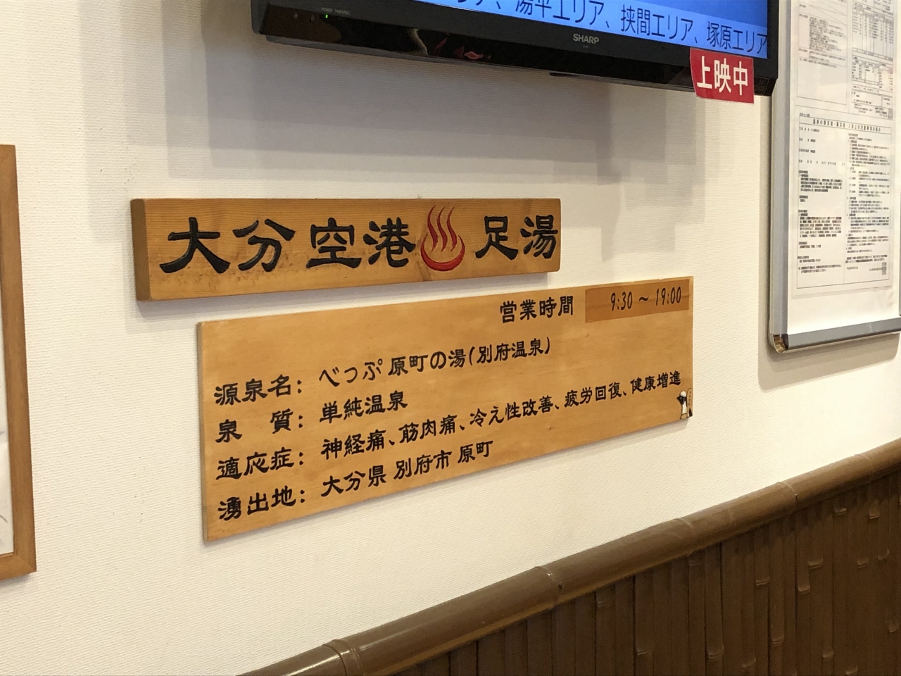 空港施設の中1Fに足湯コーナーがあるので冬でも搭乗時間までのんびりできるようです。カードラウンジは、3番搭乗口の前にありましたが少々狭いかも。個人的には、ラウンジで休憩してるよりフリーWi-Fiを使って足湯で過ごした方が別府温泉感が味わえていいと思います。