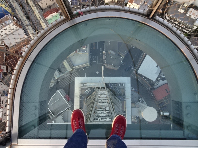 下の串焼き屋さんには何度も言っていたのに なかなか登る機会がない通天閣。リタイアしたので初めて展望台へ行ってみました。平日午後は、ほとんど人がいません。展望デッキ込みで1200円。大阪市内を一望。デッキに出ると足元がガラス張り。ちょっとこわいです。