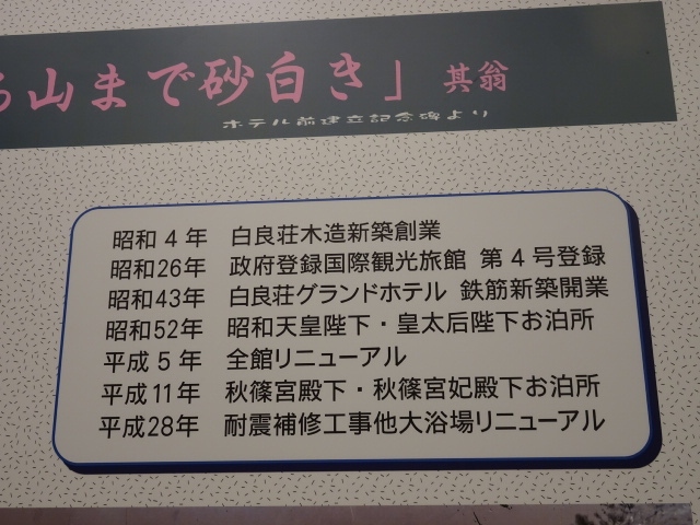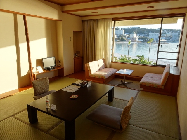 昭和天皇、皇后、秋篠宮殿下が宿泊したことのあるホテルとのこと。客室は、昭和の名残がありますがリニューアルは、されているのできれいです。部屋のカギはオートロックではありません。目の前に広がる白浜はホテルの庭と続いています。食事はバイキングではなく各テーブルに運ばれてきます。露天風呂からの景色も海風に吹かれて最高でした。