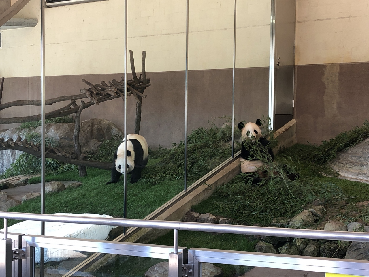 パンダがたくさんいるとは聞いていたけれど、パンダがそれぞれのびのびとしている展示舎、エリアが4か所とはびっくり。イルカとクジラのショーをする会場ビッグオーシャンは、30列、259と ベンチ席ではなく跳ね上がりはしないけど個別の席が7000席以上。東京フォーラム5012席をはるかに超える広さにもびっくり。一度のパフォーマンスに6人のトレーナーが12頭のイルカクジラを演技させている広ーいプールにも感激でした。イルカ、ペンギンの数が以上に多いです。ほぼ繁殖施設と思うような数でした。どの動物とも近く感じて、1日飽きない施設でした。
