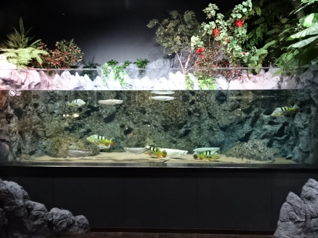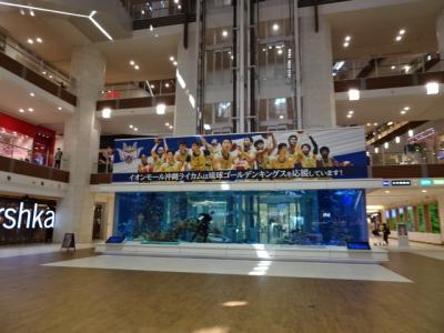 沖縄の海が感じられる大きな水槽があるイオンモール