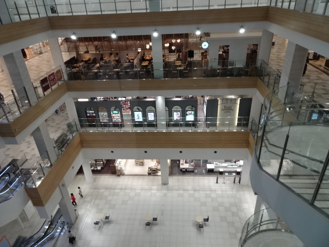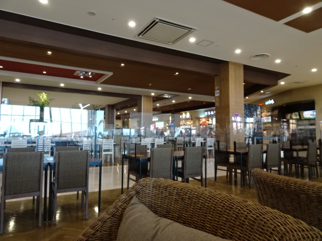 入るとすぐに大きな水槽がお目見え さすが沖縄のショッピングモールです。駐車場がとても広く次から次へと車が入って来ますが余裕です。フードコートは、とても広いスペースでごみごみしていないのが良いです。座席もリゾート風でした。