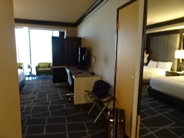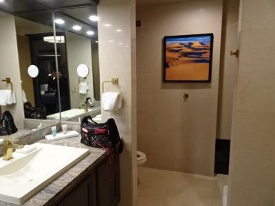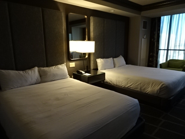 ラスベガスのメイン通りに面しているM life系ホテルの中ではリーズナブルなホテルです。リゾートフィー、駐車場代も少し抑え目です。バスタブ付きの部屋で落ち着いた感じのホテルです。ラスベガスなら当然ですが冷蔵庫はありません。
