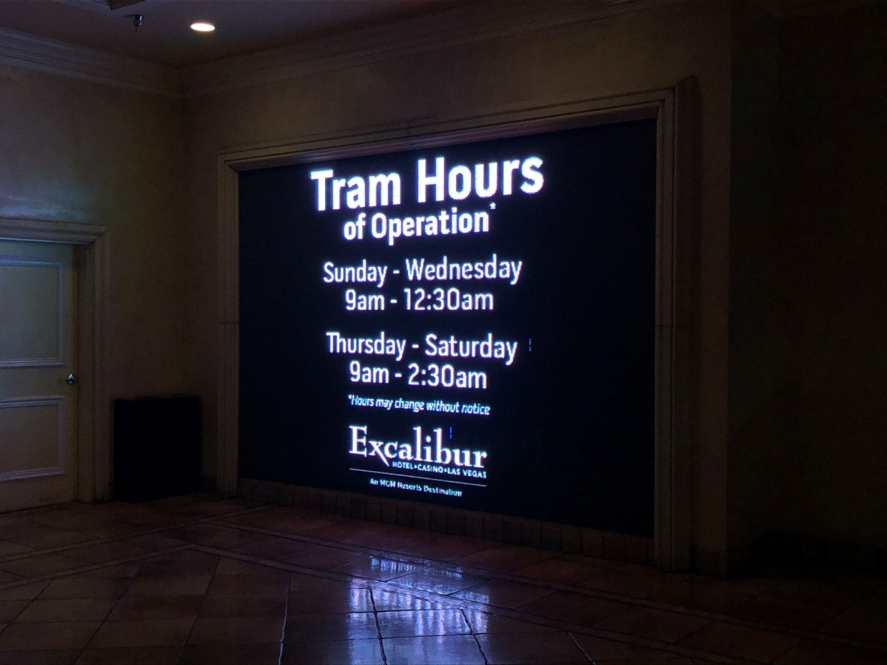 北のミラージュからTIホテルの間、ベラージオからパークMGMの間、エクスカリバーからマンダレイベイの間が今回動いていました。以前は、エクスカリバーからマンダレイベイの間にあるルクソールにも止まりましたが今は、乗り場も閉鎖されていました。- 旅行時期