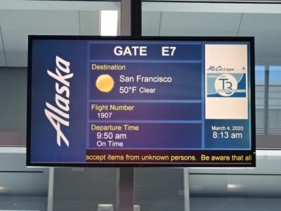 アラスカ航空を使用したので第三ターミナルからチェックインしました。アメリカン、デルタなどの大手航空会社の使用している第一ターミナルの方は、お店も充実しているのでいろいろと時間をつぶすことができますが、第三ターミナルは、お店はほぼ無しす。時間があればトラムで第一ターミナルに行き 暇つぶしした方が良いかもしれません。