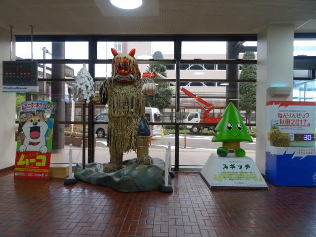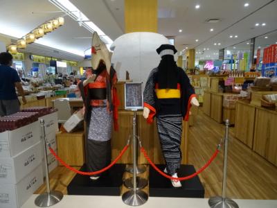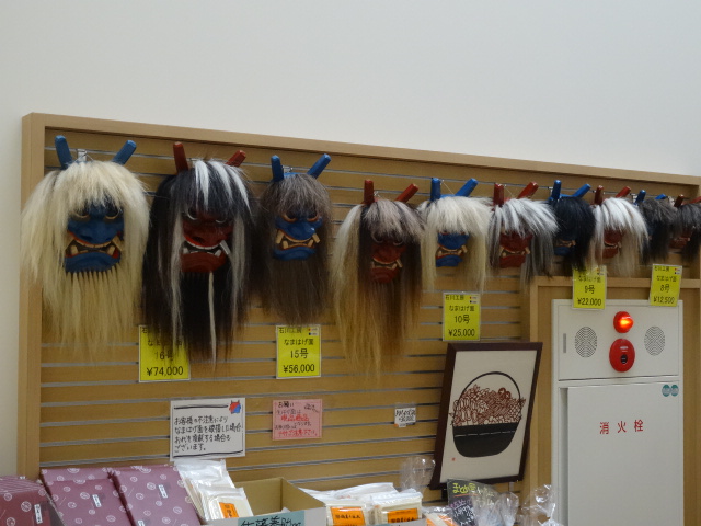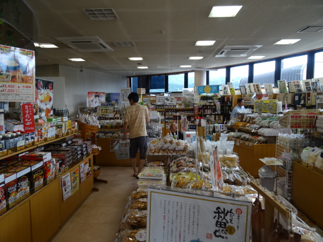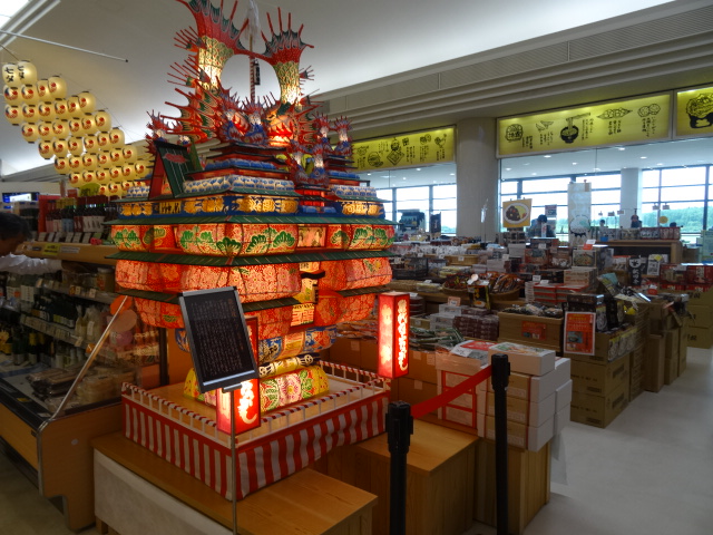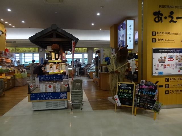 お店の中は、秋田色いっぱい。なまはげ、竿灯、七夕、踊りに関する展示物、地元の数多い食材がたくさん並んでいます。秋田には、意外と名産物が多いのにはびっくりしました。お酒、漬け物、お菓子、稲庭うどん類、目移りしてしまいます。