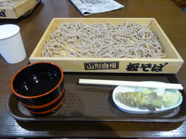 色々な施設がある道の駅です。天童温泉、アスレチック食事などゆっくりと楽しめる場所だと思います。食堂で板そばを注文。腰があってとても美味しかったです。板そば750円。意外と見た目より量がありました。地元のお土産もたくさん。