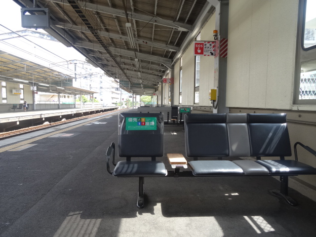 今回伊丹駅から猪名寺まで利用しました。初、福知山線乗車。両駅ともホームが広くベンチが向かい合わせに並んでいます。席もクッション付きのベンチでお尻が痛くなることもありませんでした。時間帯のせいかわかりませんが 快速の車両数より各駅停車の車両数が多いのには驚きです
