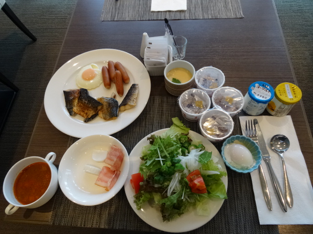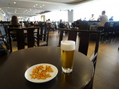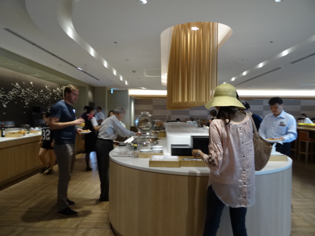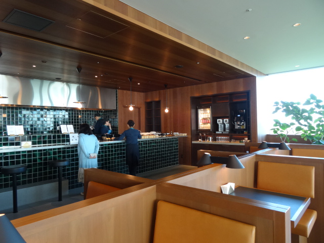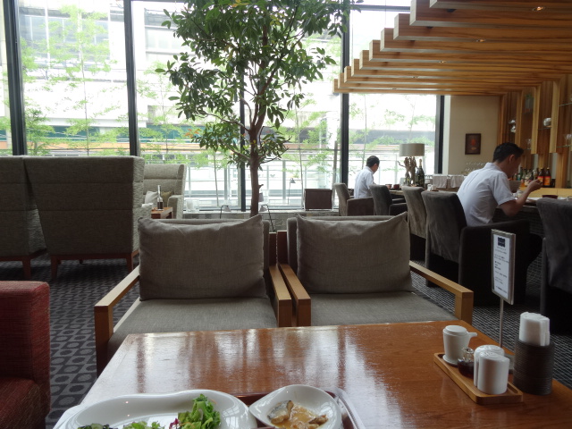JAL便で出発の今回、ワンワールドのラウンジはどこでも使えるので混んでいるサクララウンジを早めに切り上げキャセイパシフィックのラウンジに来ました。中は広々しており座席も景色も最高。カウンターで和定食も頼めます。
