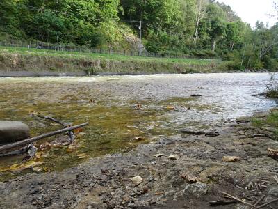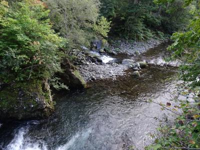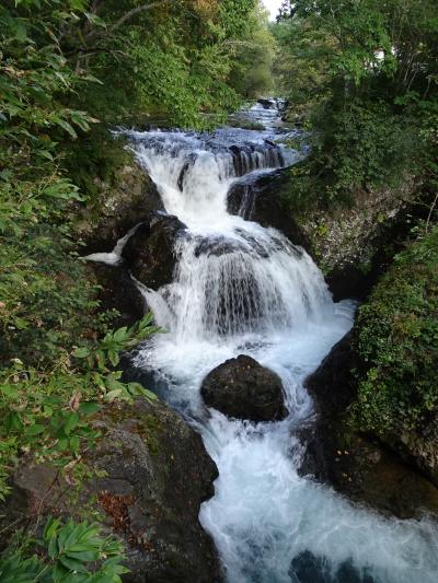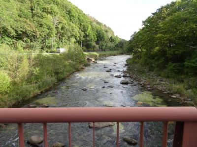 緑の風リゾートきたゆざわの駐車場から小道を降りるとすぐ。途中源泉から流れる足湯がありゆっくりと休むことができます。少し足元が悪いですが河原まで降りられました。ホテルの両サイドにある橋の上から見る白絹の床全景も良いです。