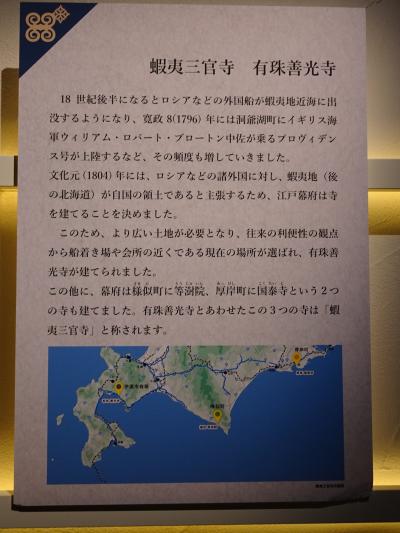 伊達市が世界遺産登録決定を前面に出していることがわかります。展示されていた伊達家由来の備品他蝦夷地開拓の歴史、北海道が自国の領土であることを主張するための蝦夷三官寺建設などアイヌを含めた歴史がわかる施設でした。観覧料300円