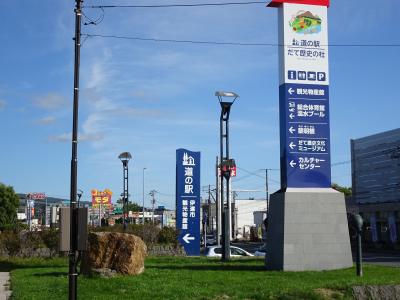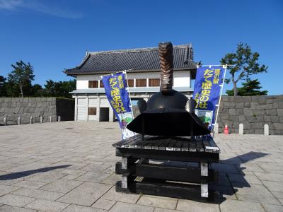 城壁が広がる公園と一体化した道の駅。巨大な兜のオブジェが目立ちます。店内はフードコートやレジが難題もあるスーパーのような装い。地元の野菜などが、数多く販売されていました。その中に仙台牛たんやトウガラシの味噌漬けがありました。