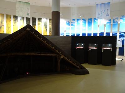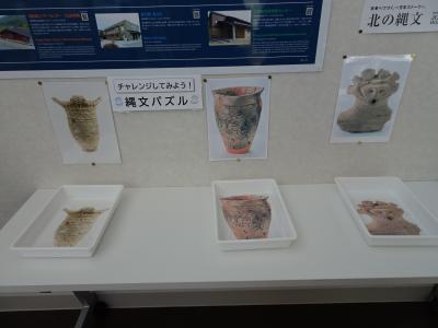 世界文化遺産登録決定を前面に縄文土器、銛、縄文人の骨のレプリカなどが展示されています。有珠山と共に生活していた人々の歴史が良くわかりました。展示コーナーの終わりに縄文土器の写真のジグソーパズルをやっているうちに縄文土器の破片から複製を作ることの大変さがわかりました。