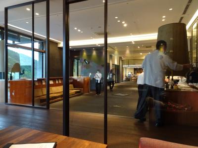広いロビーがお出迎え。ロビーからの景色も抜群のリゾートホテル。駐車場に止まっている車はレンタカーが少なく道内のリピーターが多いようです。大浴場は、内湯が広く洗い場もたくさんありました。露天風呂はとても広く25mプールより広い感じの岩風呂。その周りの山を散策するように大き目のハーブ系たる風呂が10種類くらいあります。露天風呂の横にある内湯は、立湯、座り湯、寝湯、日替わり湯には、りんごが20個くらい浮いてました。日ごとに男女入れ替え。食事もバラエティーに富んでいました。