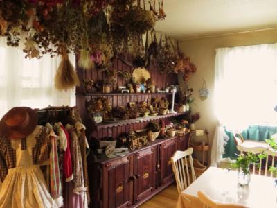 お庭で栽培されたお花やハーブのドライフラワーが建物内のあちこちに飾られていたり、手作りの家具や昔ながらの薪ストーブがあったりと、温かみが感じられます。