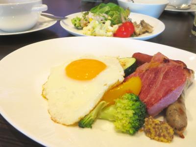 - ハーブを使った洋風の食事。朝食のパンがおいしい