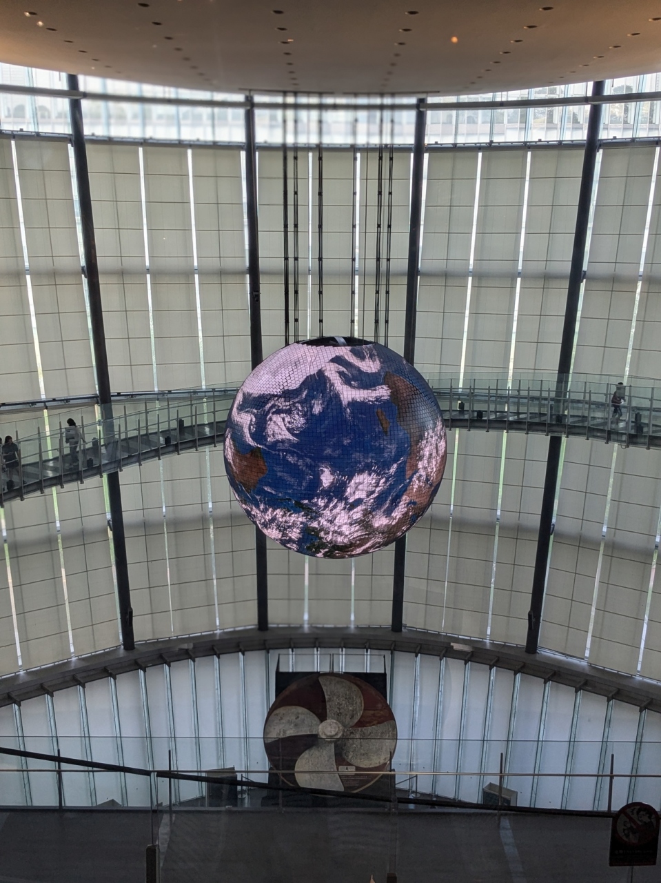 月曜日に休館の博物館、美術館が主なんですが、ここは開いています。室内施設なので、天候気にしないですみます。常設展だけなら630円。ドームシアタープラスすると、940円です。ドームシアター30分上映。事前予約。ドキュメンタリーISSみましたが、ちょっと期待していたものと違いましたが、他のプログラムであれば違ったかも。他の展示スペースでは、ロボットあったり科学、環境、ゲーム参加とかなり楽しめると思います。子供連れて来るには良いかも。金額もリーズナブルなので。海外の方もかなりいましたね。最上階には、レストランもあるので長時間入れますね。おすすめです。