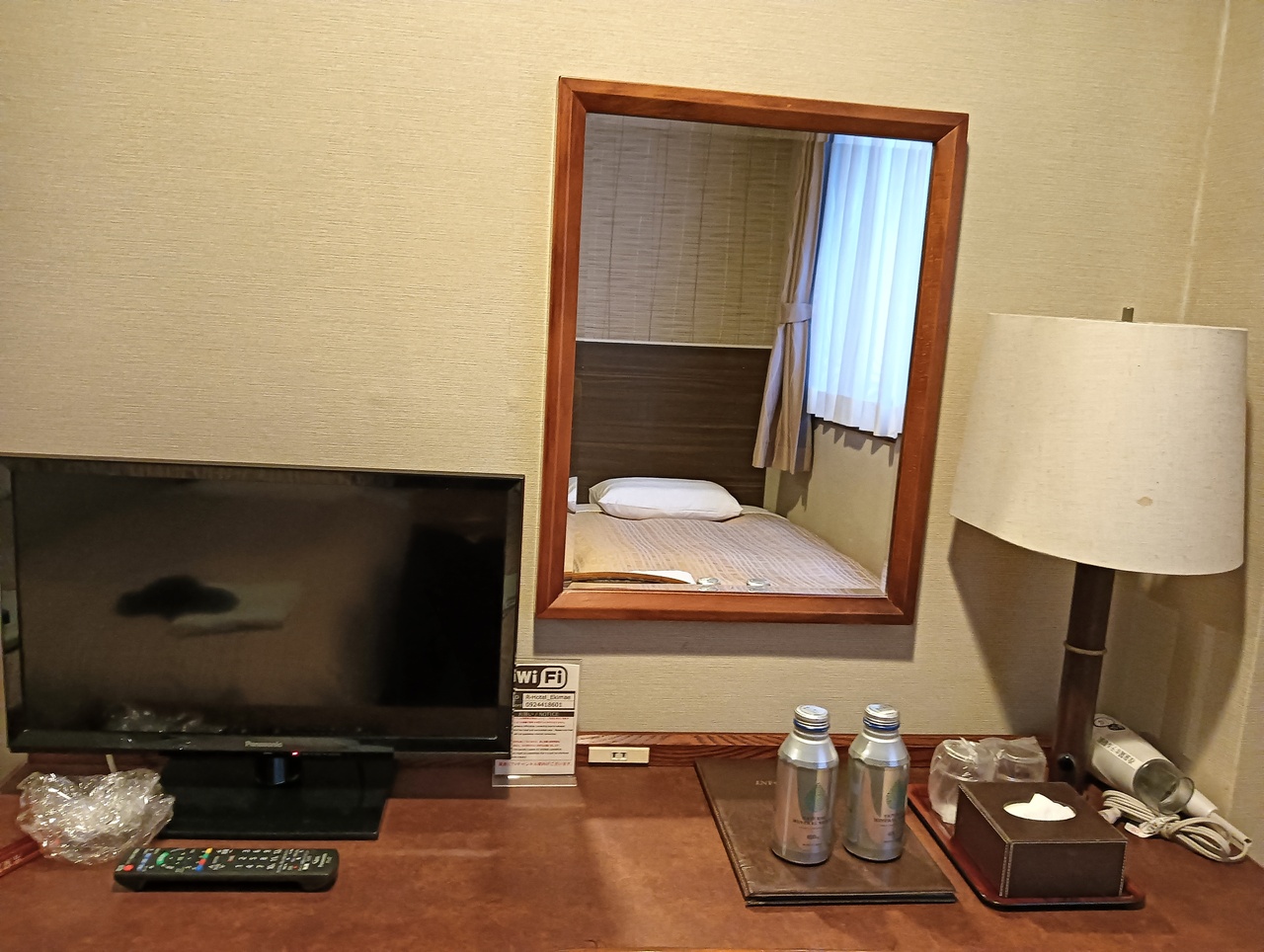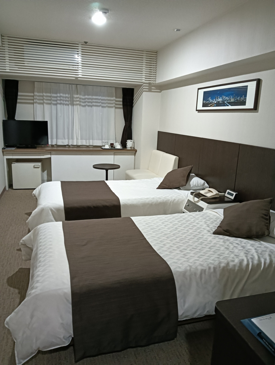 トラピックスのパックで1番お安めのホテルでしたが、なかなか良かったです。十三駅から近いです。周りにはラブホテルも多かったし、居酒屋も多いです。大きな通りや、駅商店街には飲食店が多いから困りません。1人でしたがツィンルームで広め。チェックインで、ミネラルウォーター、アメニティをもらいました。チェックアウトにはホッカイロも。残念なのは隣の声が聞こえる。トイレの流す音が大きい事。あとはまた来ても良いかと思います。