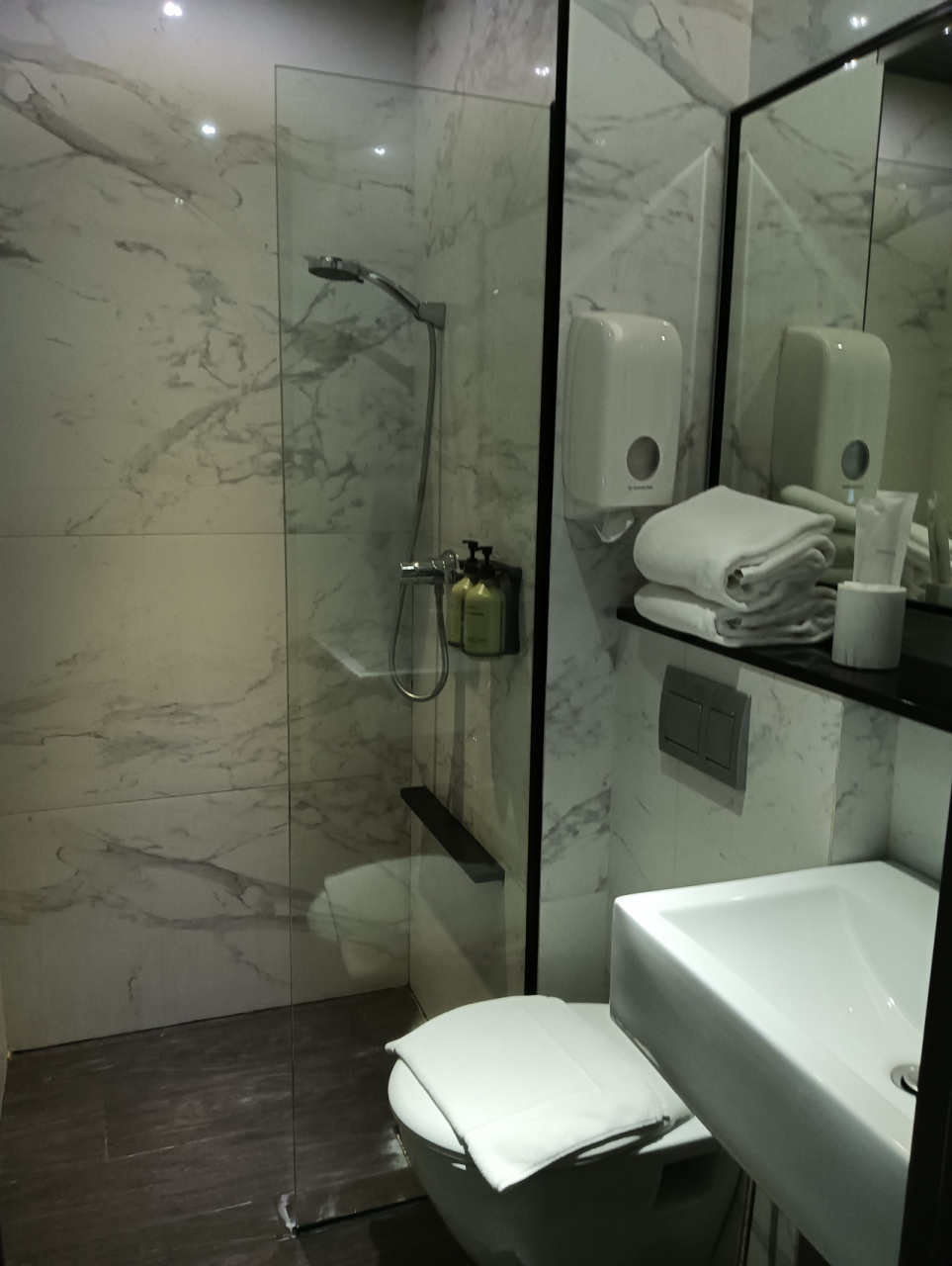 立地は確かに良い。地下鉄も近いがバスがたくさん走っているので、便利でした。中に入ってるコンビニは高かった。飲食店は入ってるがラベンダー駅まで行ったほうが良い。シャワー室は、ドアにタオル挟まないとトイレまで流れます。フェースタオルなし。歯磨きコップなし。細かいとこ掃除は出来てない。フロントの人は感じがよかった。