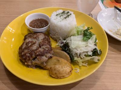 今度は旅行行く前に夕食に生きました。新装されていてオシャレになっていました。入口で整理番号発券して待ちます。呼ばれたらチェックインで番号発券、会計にまた使用します。いつもの手ごねハンバーグプレートを注文です。サラダ、スープバー付き。ドリンクはつけなくっても食べるだけなら十分です。サラダをたくさん食べれるのは魅力的。ハンバーグは、小さくなりましたか?土曜日なので混んでましたよ!