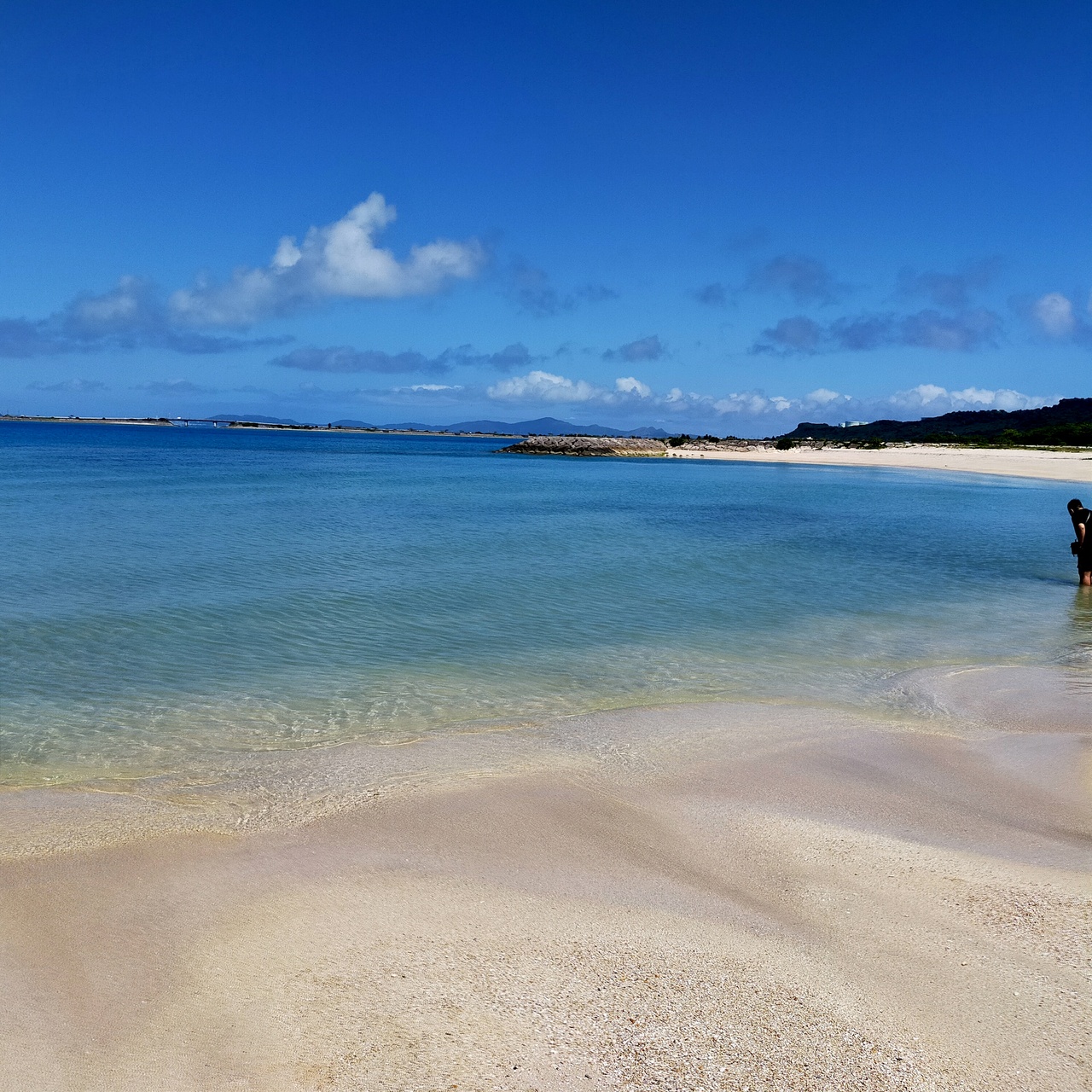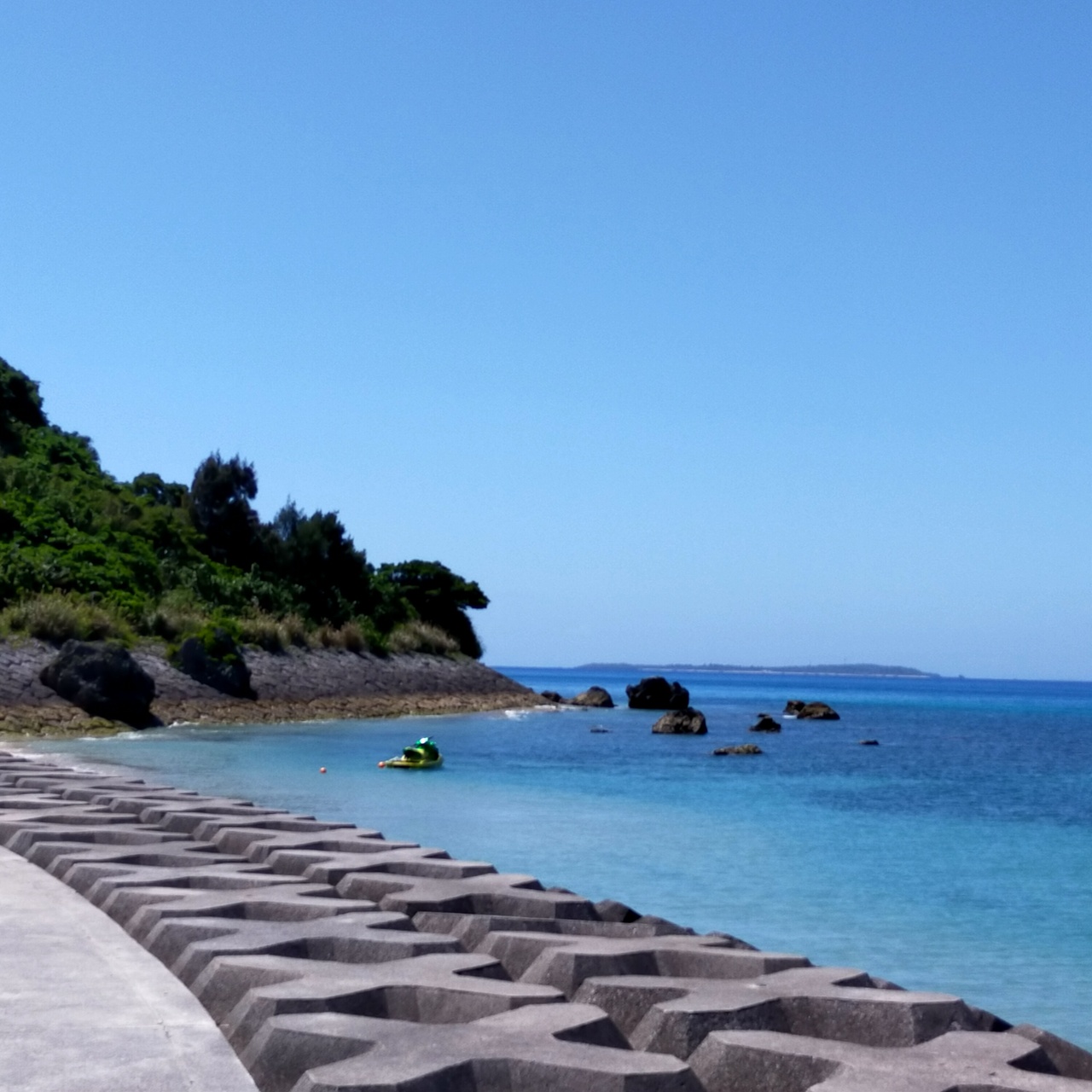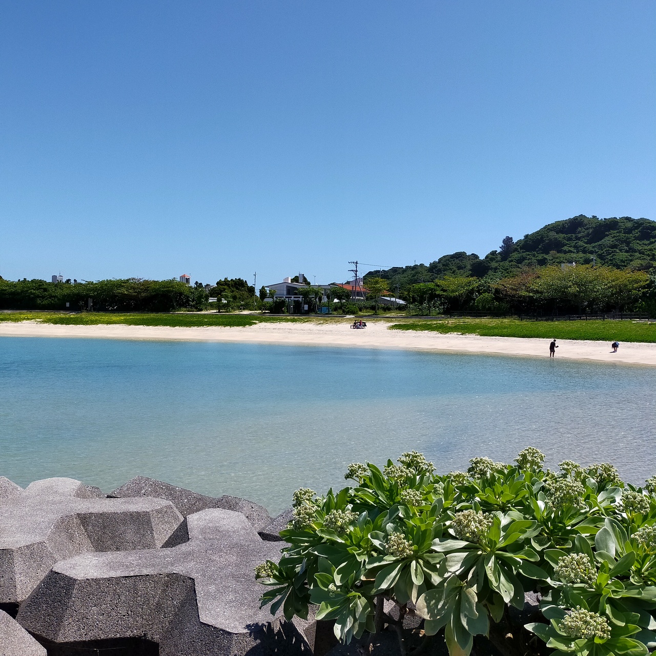 ぬちまーすの人に教えてもらった穴場的海岸。浜比嘉島に渡ってすぐだったと思います。ここは、駐車場無料だし、トイレもあるから。地元の人が日光浴していたり、小さな子供を遊ばせてました。ボートもみえたし、休みは人が来るのかな。足だけ使ってみましたが、まだ冷たかったです。